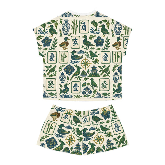 Chinoiserie Mahjong Pajama Set, Blue and White Women's PJs, Dragon Ducks Tiles, Mom Sister Bestie Gift, Girls Mahj Weekend Bachelorette,