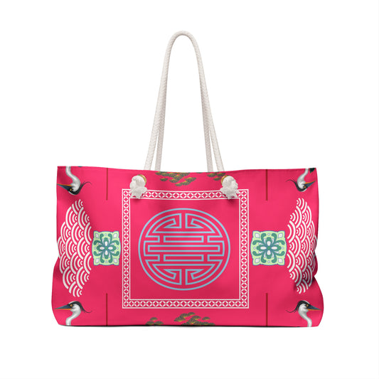 Chinoiserie Cranes Mahjong Weekender Bag - Mahjong Tile Girls Weekend Gift, Floral Pattern Antique Shop Traditional Travel Tote