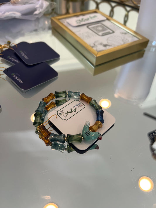 Bam Bird Mahjong Acrylic bamboo bracelet porcelain bird bead Beaded Colors Braceletsglass beads & acrylic, stretchy. Sold separately