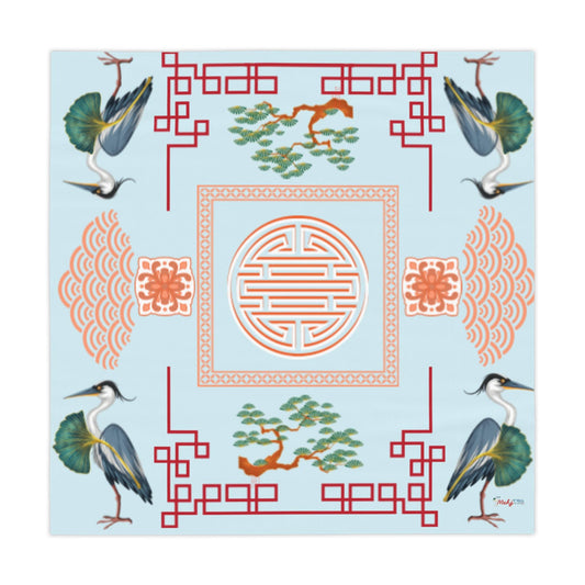 Chinoiserie Cranes Fretwork Mahjong Week Bag - Mahjong Tile Girls Weekend Gift, Floral Pattern Antique Shop Traditional Travel Tote